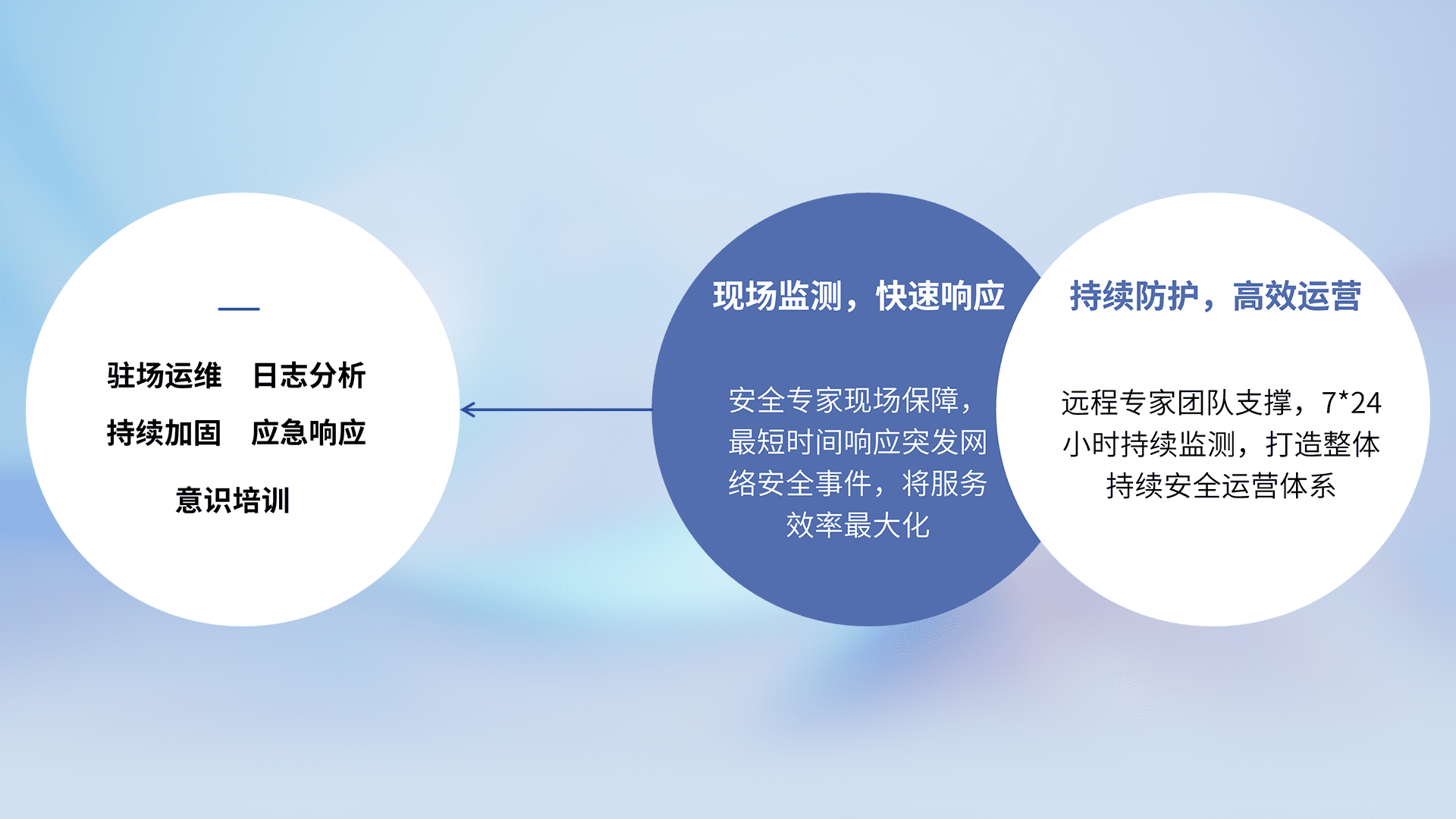 针对客户行业特性,,,,提供专属的一站式安全管理服务,,,帮助客户全面感知网络空间威胁,,通过安全专家的线上、、线下防护支持,,,实现风险闭环,,,,将安全保障常态化,,,,为客户打造常态化安全运维运营服务。。